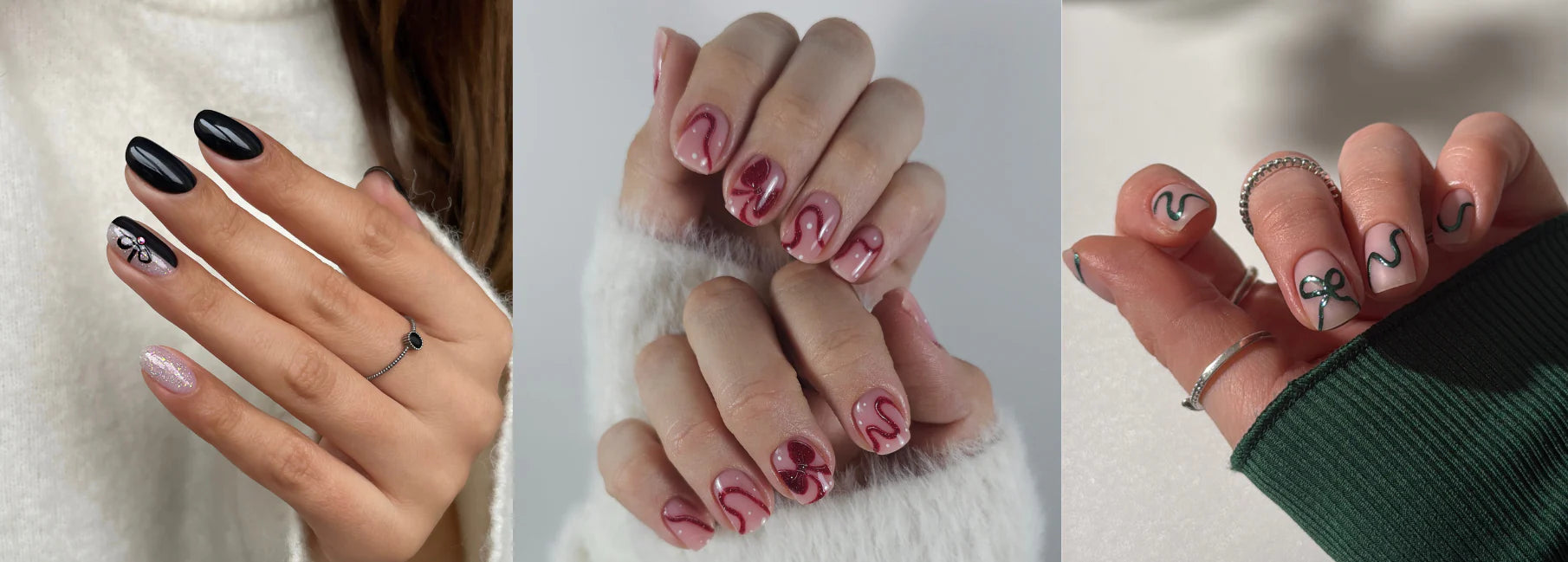 Che siano delicati su una base lattiginosa, glamour con effetti metallici o giocosi nel classico rosso natalizio, i fiocchi sono il dettaglio perfetto per una nail art femminile e natalizia.