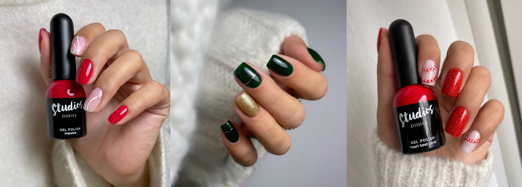 Il Natale 2025 sarà più glamour che mai – e le tendenze nail delle feste lo dimostrano, mostrando quanto possano essere versatili le manicure natalizie. Dai design scintillanti con glitter alle eleganti decorazioni con fiocchi di neve, fino ai moderni look statement: con i prodotti di alta qualità Didier Lab è possibile creare con facilità e in modo professionale ogni stile natalizio. Protagoniste di quest’anno sono le nuance luminose della Collezione Brillant, i nuovi Glitter Top Coat, i colori di tendenza intensi delle linee Electro e Pop Star, insieme ai classici toni rosso intenso della Collezione Studios, che donano immediatamente eleganza a qualsiasi design.