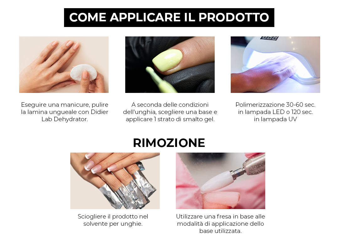 - Rimuovere il grasso e l'umidità in eccesso dalla lamina ungueale con il Dehydrator Didier Lab.