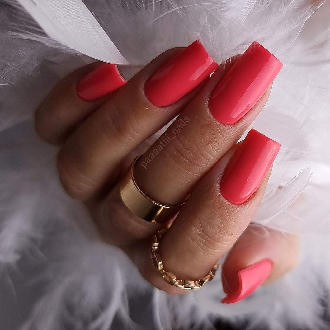 - Applicare lo smalto gel BRILLANT NEON in 1-2 strati. Il numero di strati dipende dal risultato desiderato. Lasciare asciugare per 60 secondi sotto la lampada LED o per 2 minuti sotto la lampada UV (con una lunghezza d'onda di 395-405 nm).