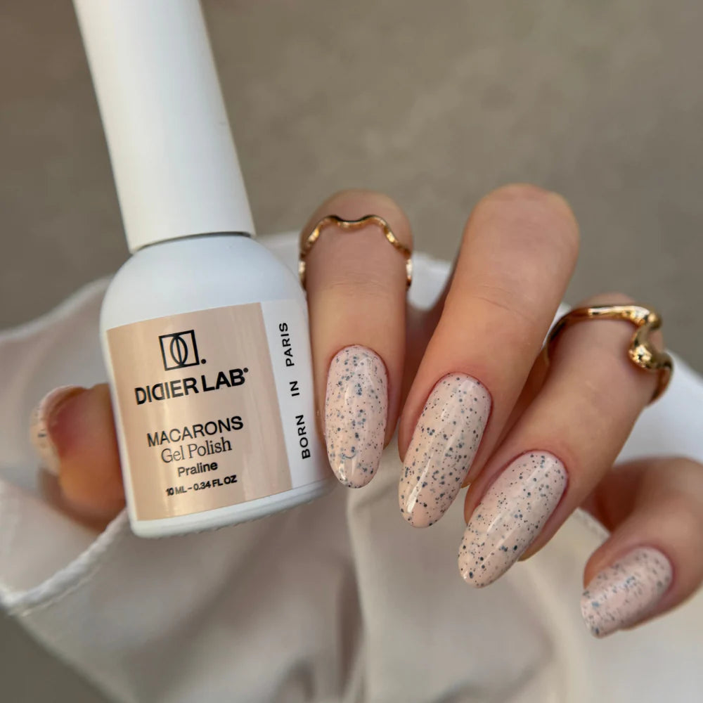 Grazie alle particelle scure e irregolari, gli smalti della collezione Macarons ricordano i biscotti macarons francesi, creando un design unico per le unghie. A seconda dell'effetto desiderato, è possibile applicare 1, 2 o 3 strati di questo smalto.