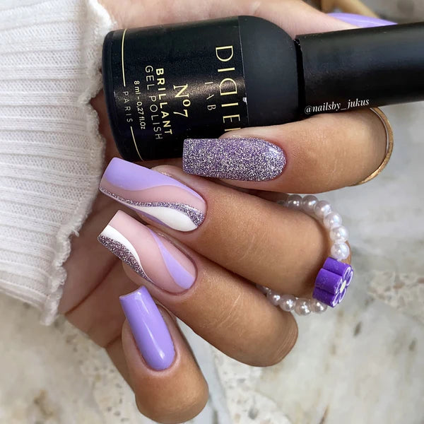 Brillant N°7 è il gel polish perfetto per chi ama manicure eleganti, romantiche e ricche di luce. La sua tonalità lilla pastello, illuminata da glitter ultra-sottili, crea un effetto brillante e sofisticato, ideale per le Christmas nails più delicate, per le winter nails chic e come idea regalo femminile durante le feste.